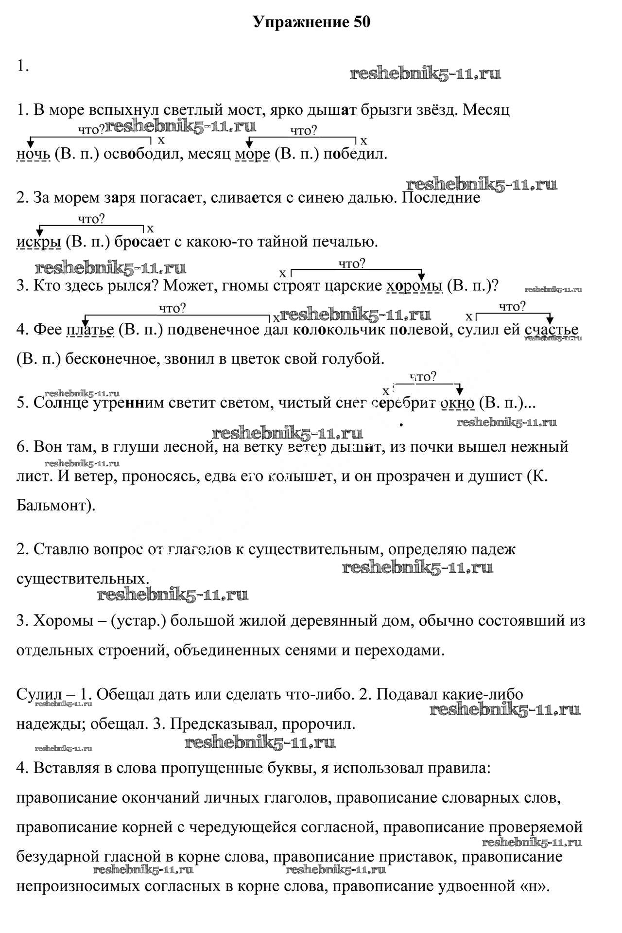 Готовая домашняя работа с ответами по Русскому языку за 7 класс Мурина, Волынец, Долбик Учебник Национальный институт образования 2015 ФГОС - Упражнения 50