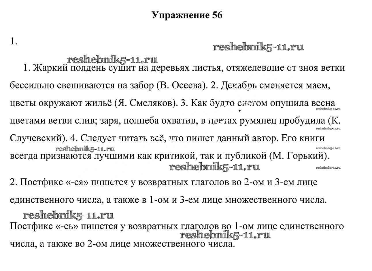 Готовая домашняя работа с ответами по Русскому языку за 7 класс Мурина, Волынец, Долбик Учебник Национальный институт образования 2015 ФГОС - Упражнения 56
