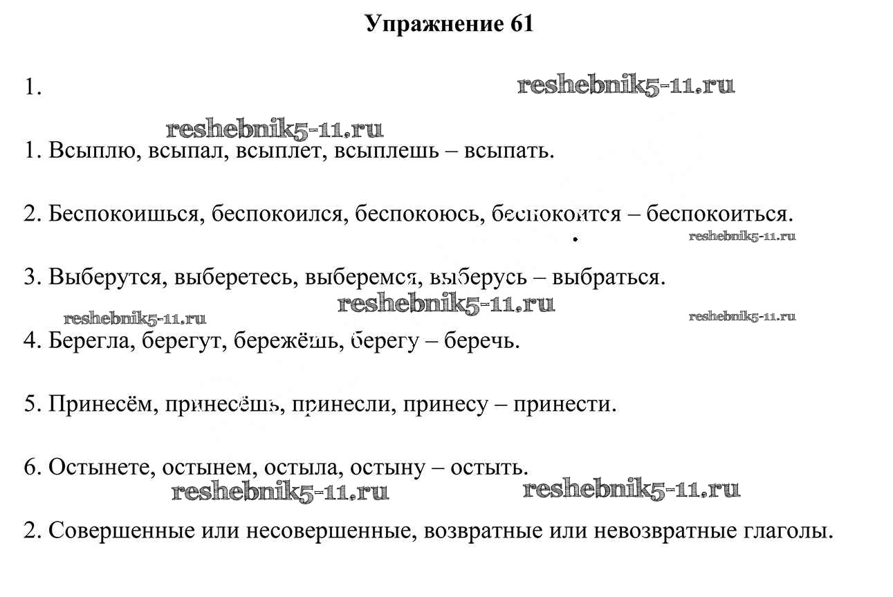 Готовая домашняя работа с ответами по Русскому языку за 7 класс Мурина, Волынец, Долбик Учебник Национальный институт образования 2015 ФГОС - Упражнения 61