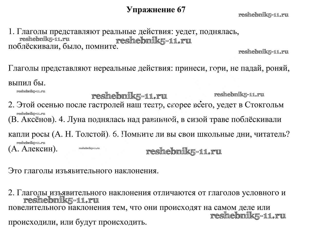Готовая домашняя работа с ответами по Русскому языку за 7 класс Мурина, Волынец, Долбик Учебник Национальный институт образования 2015 ФГОС - Упражнения 67