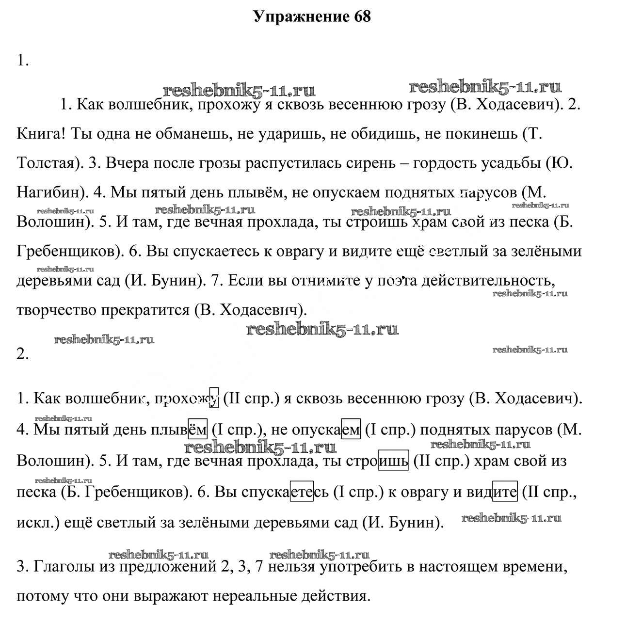 Готовая домашняя работа с ответами по Русскому языку за 7 класс Мурина, Волынец, Долбик Учебник Национальный институт образования 2015 ФГОС - Упражнения 68