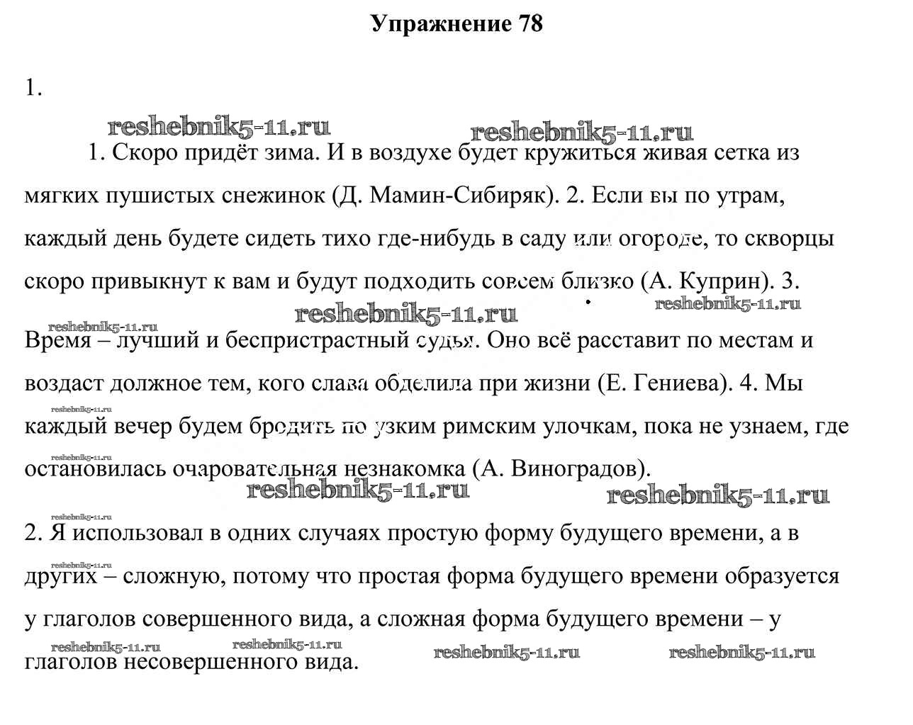 Готовая домашняя работа с ответами по Русскому языку за 7 класс Мурина, Волынец, Долбик Учебник Национальный институт образования 2015 ФГОС - Упражнения 78