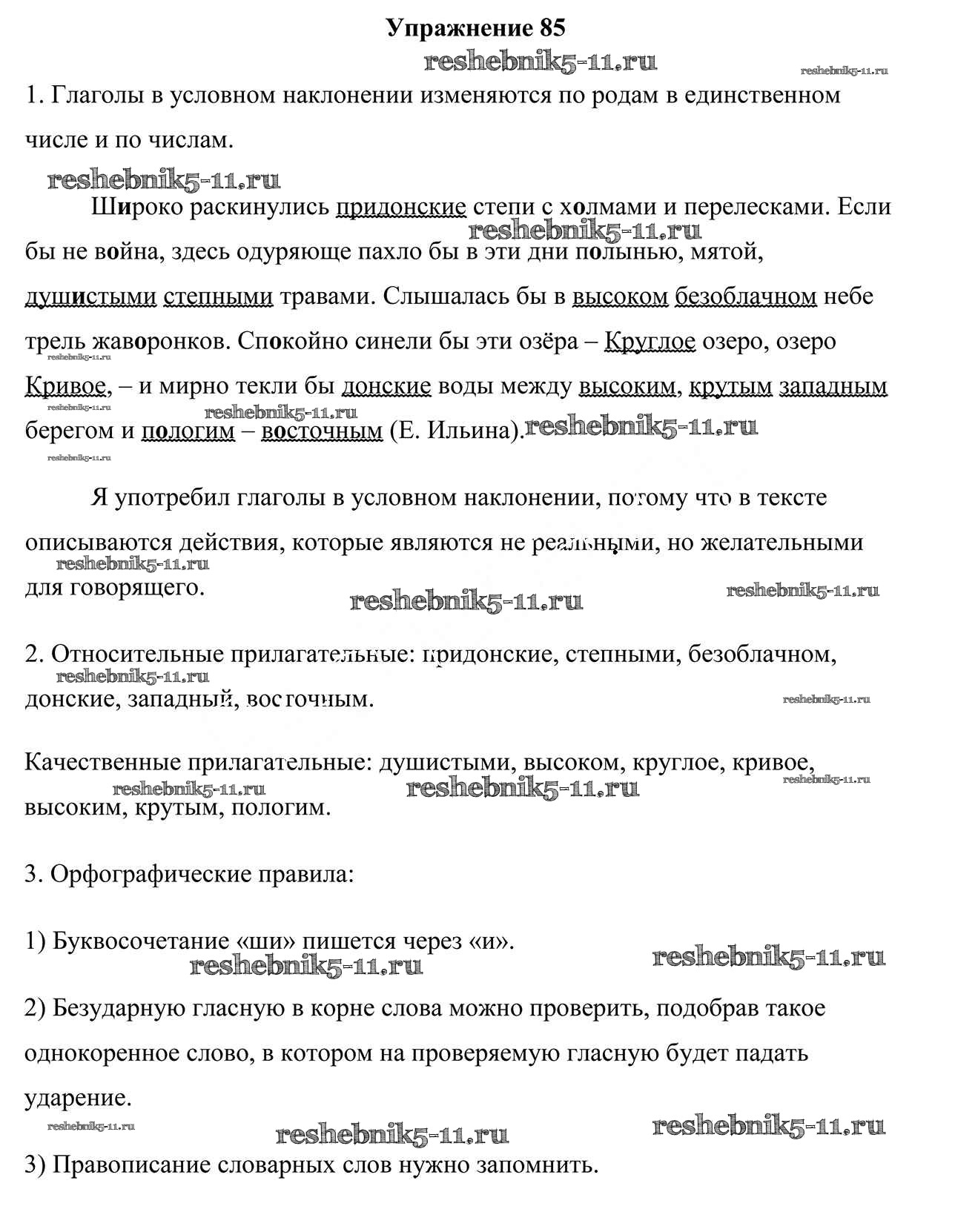 Готовая домашняя работа с ответами по Русскому языку за 7 класс Мурина, Волынец, Долбик Учебник Национальный институт образования 2015 ФГОС - Упражнения 85