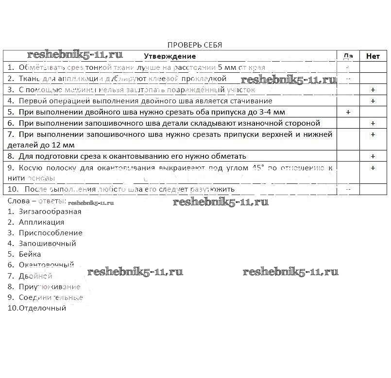Готовая домашняя работа с ответами по Технологии за 7 класс Синица Рабочая тетрадь Вентана-граф 2014 - Проверь себя 7