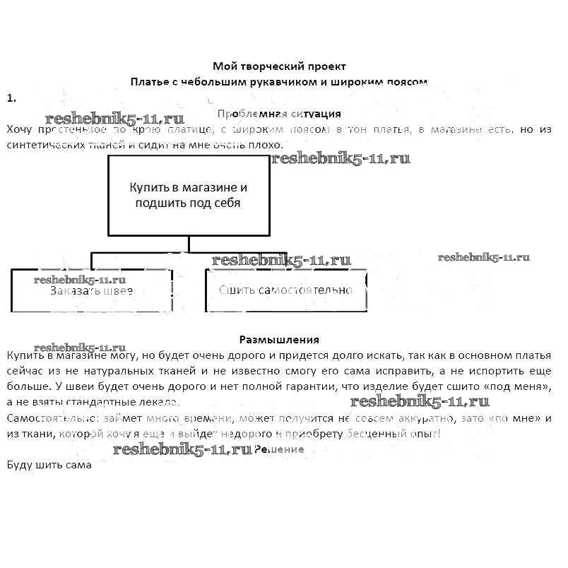 Готовая домашняя работа с ответами по Технологии за 7 класс Синица Рабочая тетрадь Вентана-граф 2014 - Мой творческий проект 1