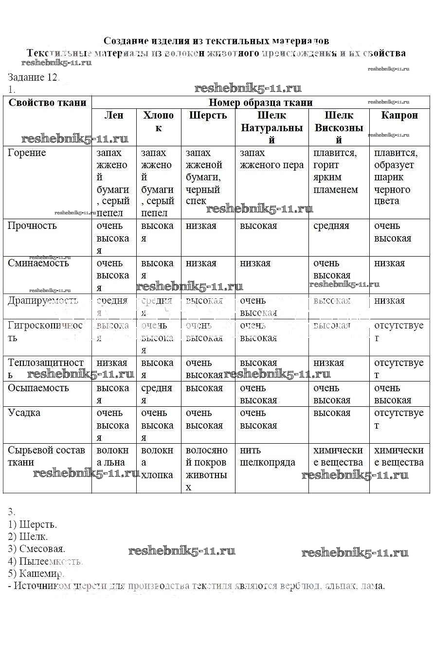 Готовая домашняя работа с ответами по Технологии за 7 класс Синица Рабочая тетрадь Алгоритм успеха Вентана-граф 2018 ФГОС - Задания 12