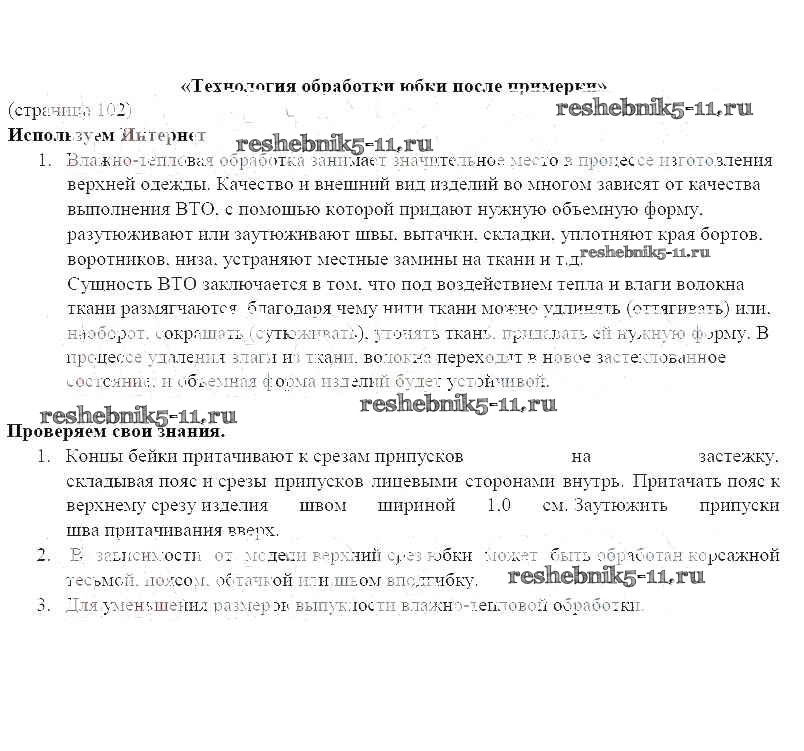 Готовая домашняя работа с ответами по Технологии за 7 класс Синица, Симоненко Учебник Алгоритм успеха Вентана-граф 2018 ФГОС - Страницы 102