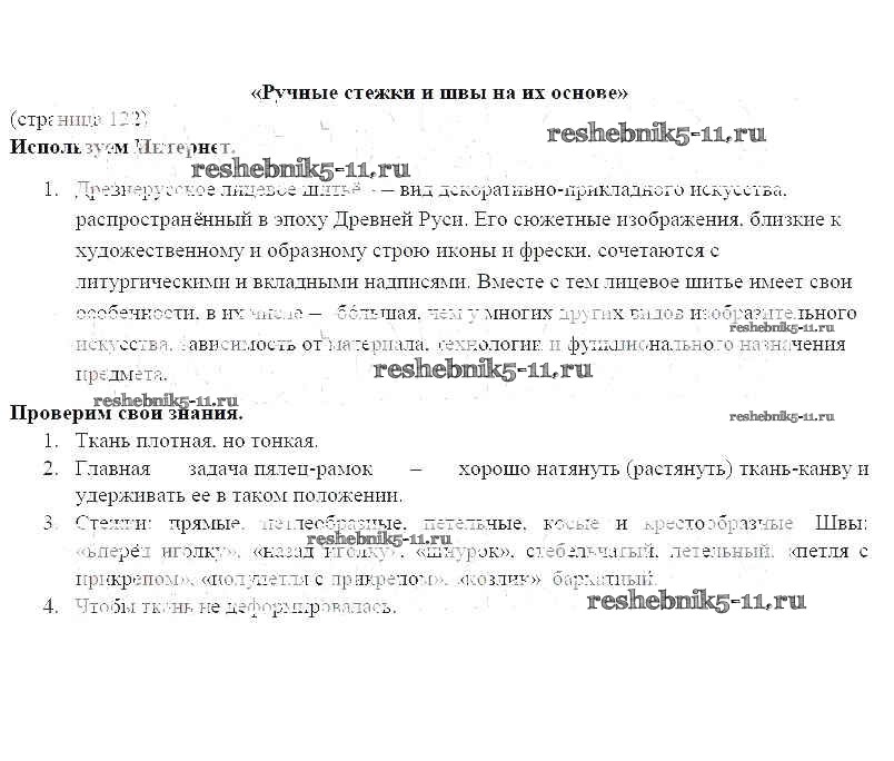 Готовая домашняя работа с ответами по Технологии за 7 класс Синица, Симоненко Учебник Алгоритм успеха Вентана-граф 2018 ФГОС - Страницы 122
