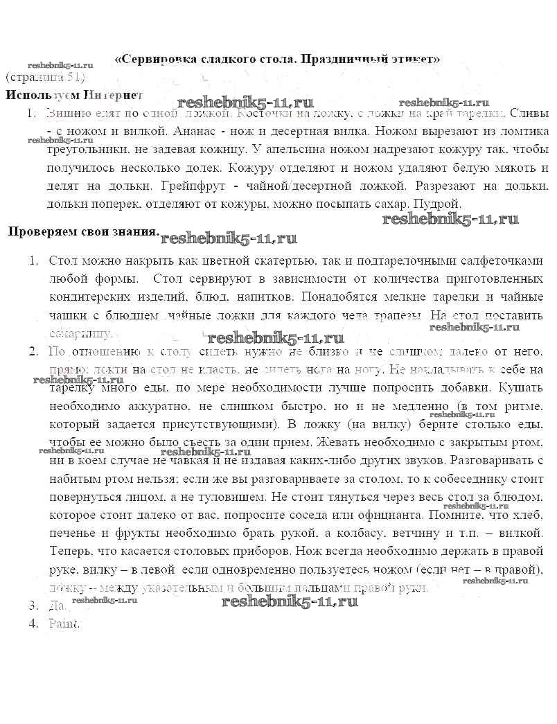 Готовая домашняя работа с ответами по Технологии за 7 класс Синица, Симоненко Учебник Алгоритм успеха Вентана-граф 2018 ФГОС - Страницы 51