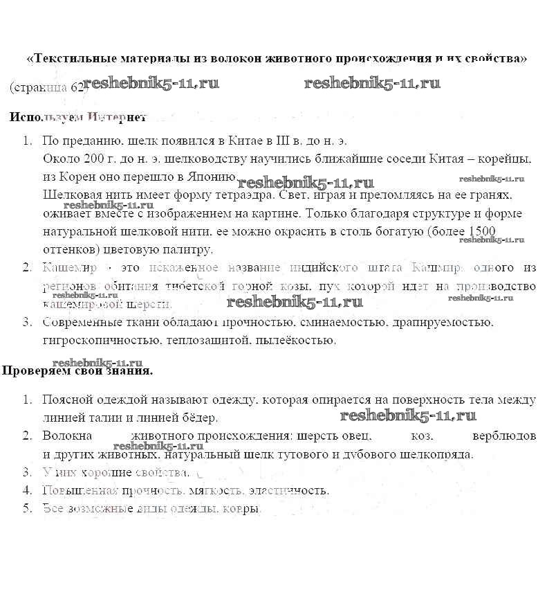 Готовая домашняя работа с ответами по Технологии за 7 класс Синица, Симоненко Учебник Алгоритм успеха Вентана-граф 2018 ФГОС - Страницы 62