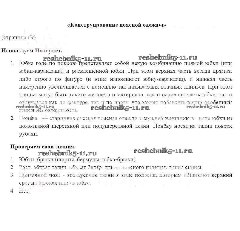 Готовая домашняя работа с ответами по Технологии за 7 класс Синица, Симоненко Учебник Алгоритм успеха Вентана-граф 2018 ФГОС - Страницы 69