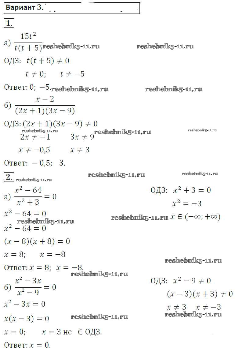 Готовая домашняя работа с ответами по Алгебре за 8 класс Александрова Самостоятельные работы Мнемозина 2016 ФГОС - СР-1. Варианты 3
