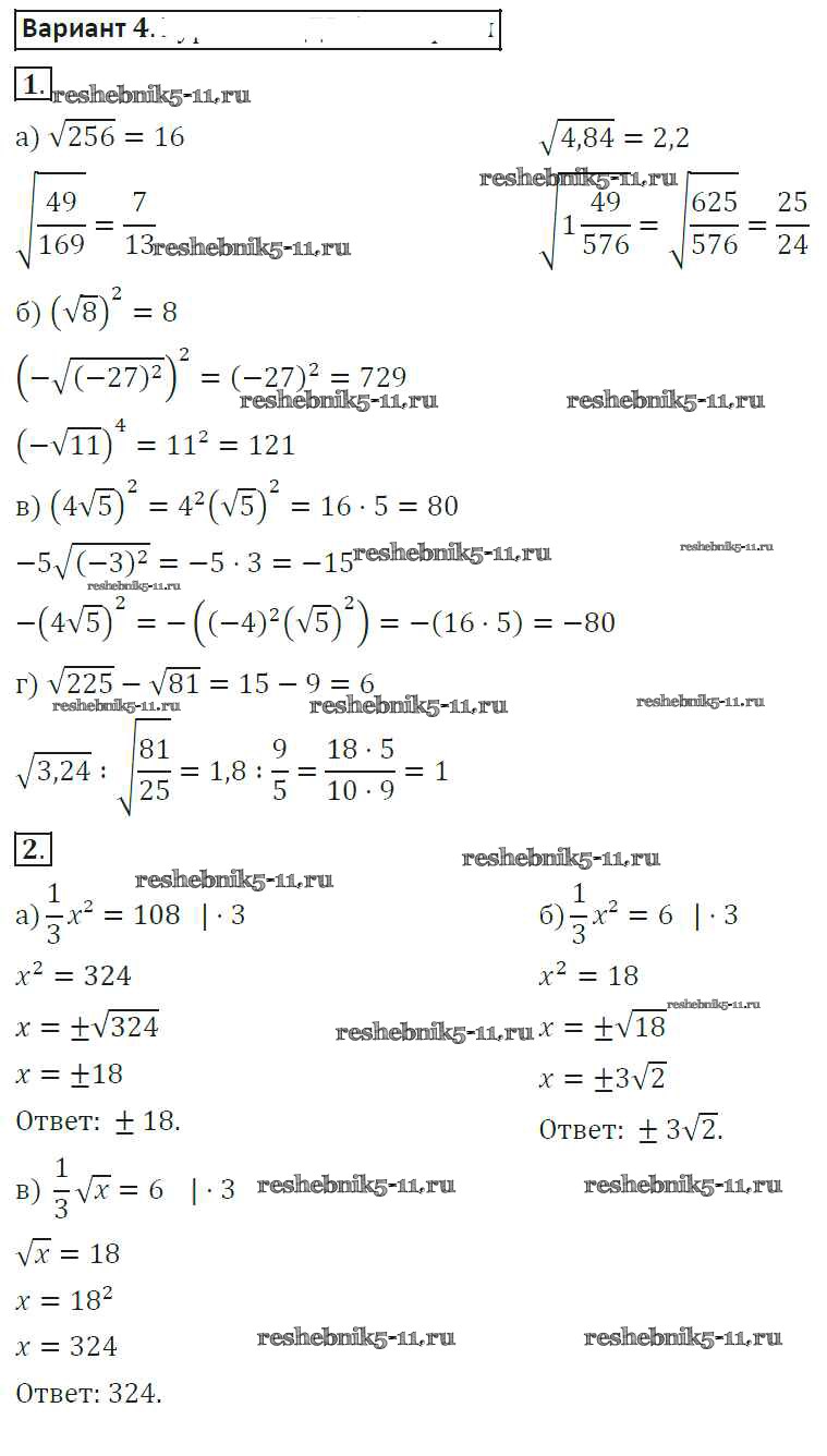 Готовая домашняя работа с ответами по Алгебре за 8 класс Александрова Самостоятельные работы Мнемозина 2016 ФГОС - СР-12. Варианты 4