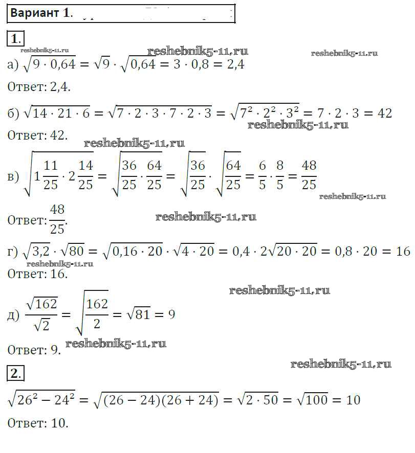 Готовая домашняя работа с ответами по Алгебре за 8 класс Александрова Самостоятельные работы Мнемозина 2016 ФГОС - СР-16. Варианты 1