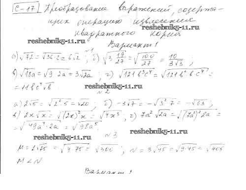 Готовая домашняя работа с ответами по Алгебре за 8 класс Александрова Самостоятельные работы Мнемозина 2016 ФГОС - СР-17. Варианты 1