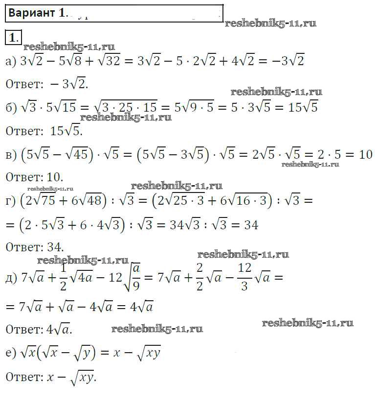Готовая домашняя работа с ответами по Алгебре за 8 класс Александрова Самостоятельные работы Мнемозина 2016 ФГОС - СР-18. Варианты 1