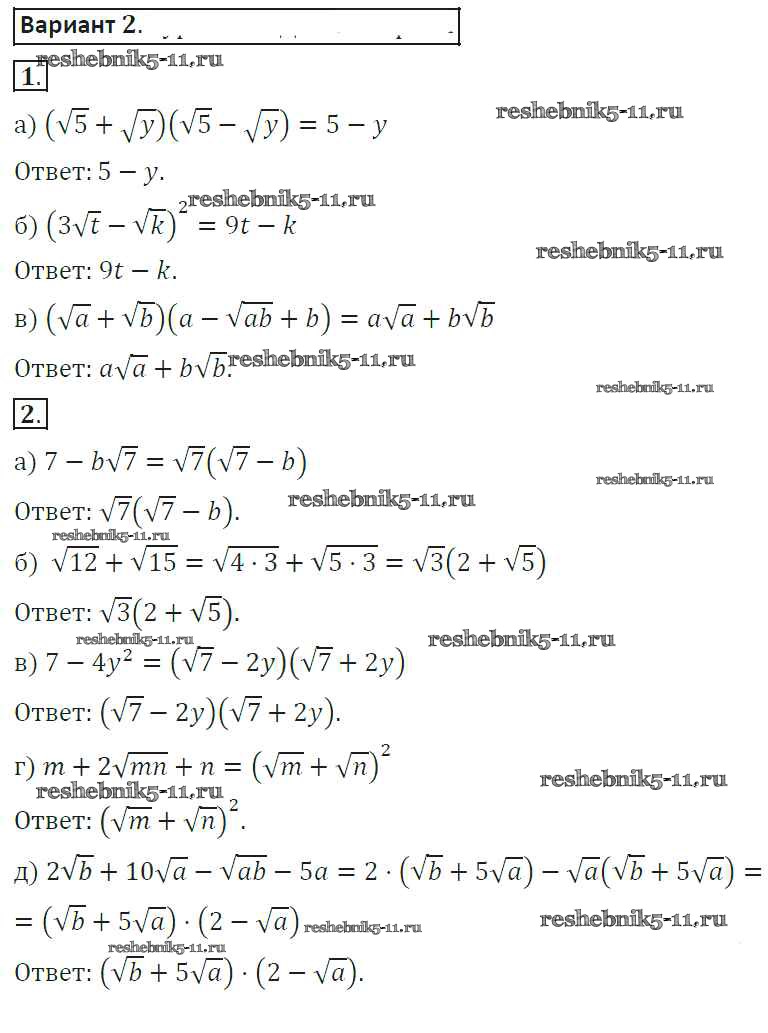 Готовая домашняя работа с ответами по Алгебре за 8 класс Александрова Самостоятельные работы Мнемозина 2016 ФГОС - СР-19. Варианты 2