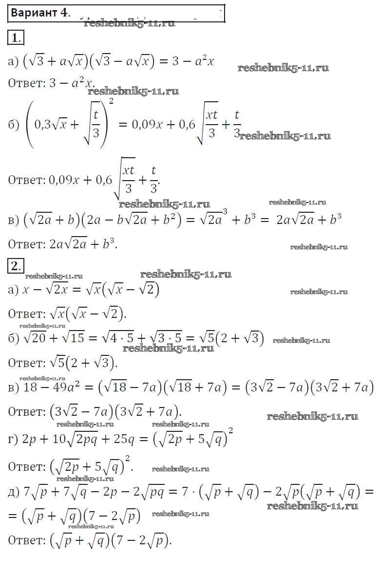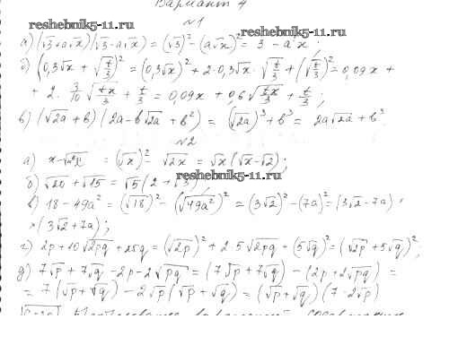Готовая домашняя работа с ответами по Алгебре за 8 класс Александрова Самостоятельные работы Мнемозина 2016 ФГОС - СР-19. Варианты 4