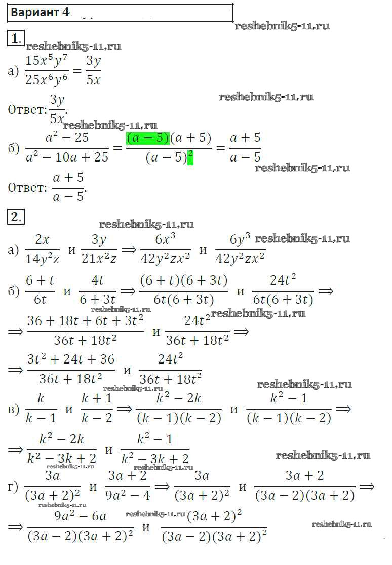 Готовая домашняя работа с ответами по Алгебре за 8 класс Александрова Самостоятельные работы Мнемозина 2016 ФГОС - СР-2. Варианты 4