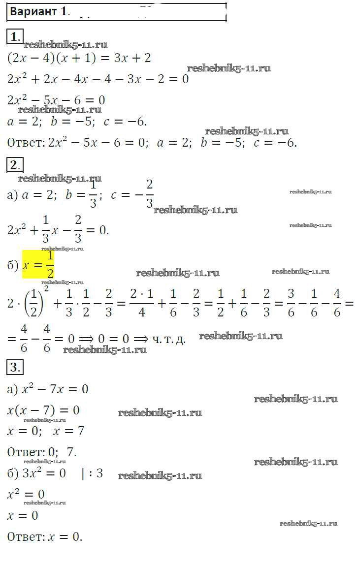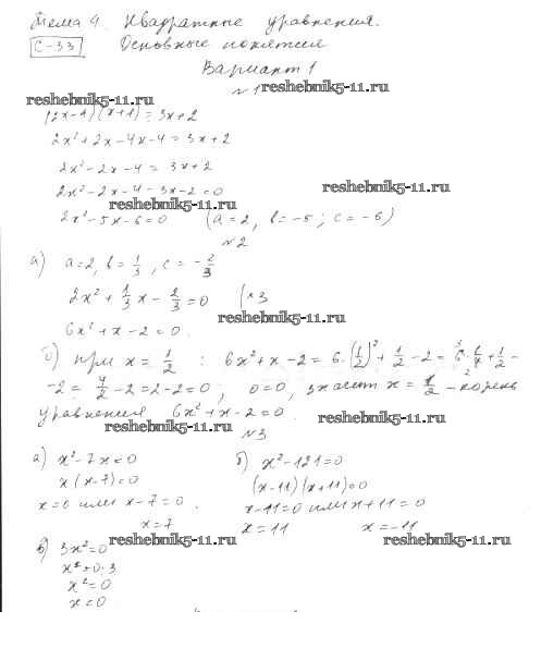 Готовая домашняя работа с ответами по Алгебре за 8 класс Александрова Самостоятельные работы Мнемозина 2016 ФГОС - СР-33. Варианты 1