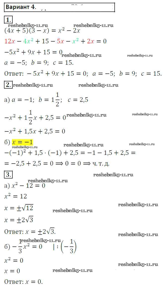 Готовая домашняя работа с ответами по Алгебре за 8 класс Александрова Самостоятельные работы Мнемозина 2016 ФГОС - СР-33. Варианты 4