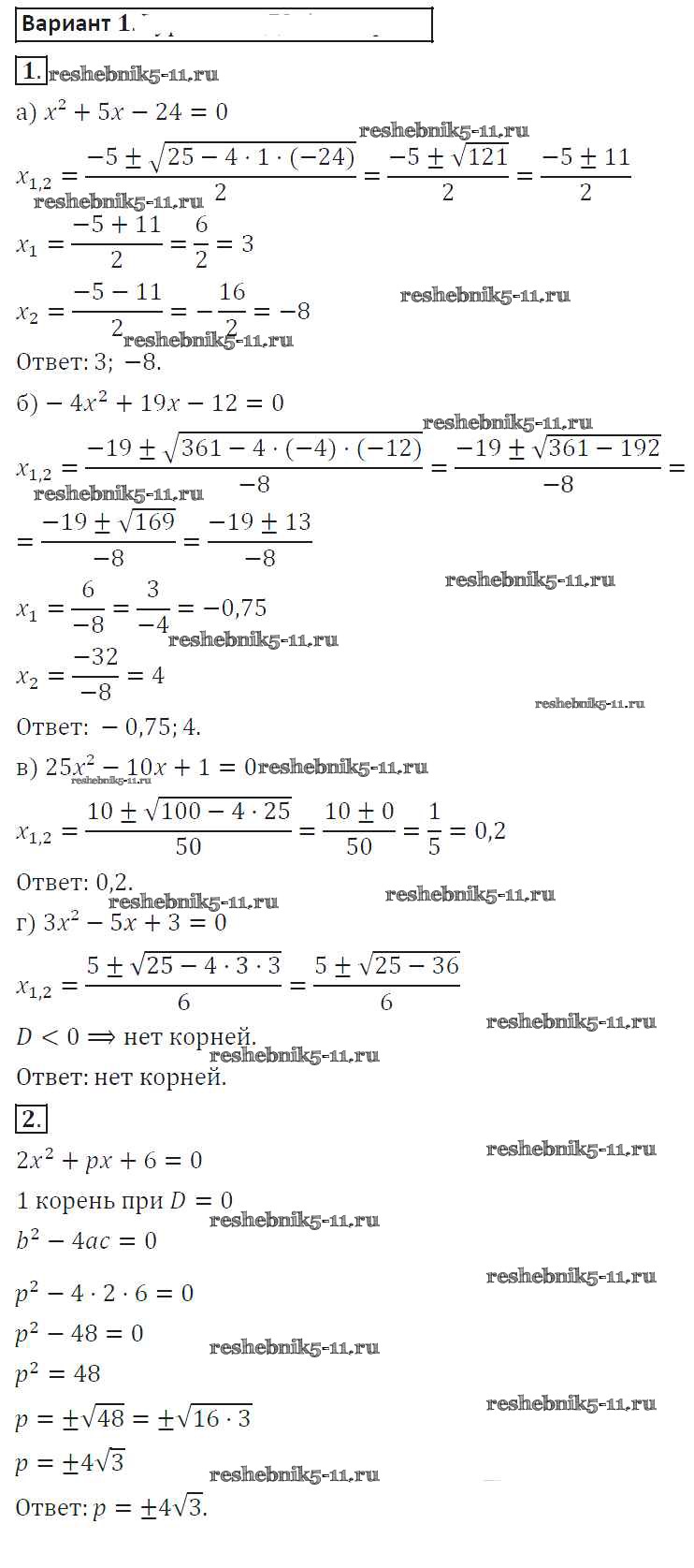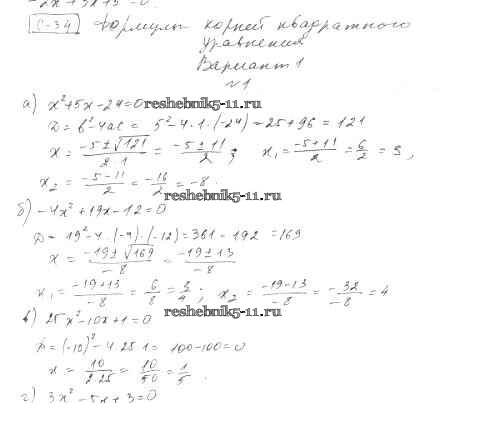 Готовая домашняя работа с ответами по Алгебре за 8 класс Александрова Самостоятельные работы Мнемозина 2016 ФГОС - СР-34. Варианты 1