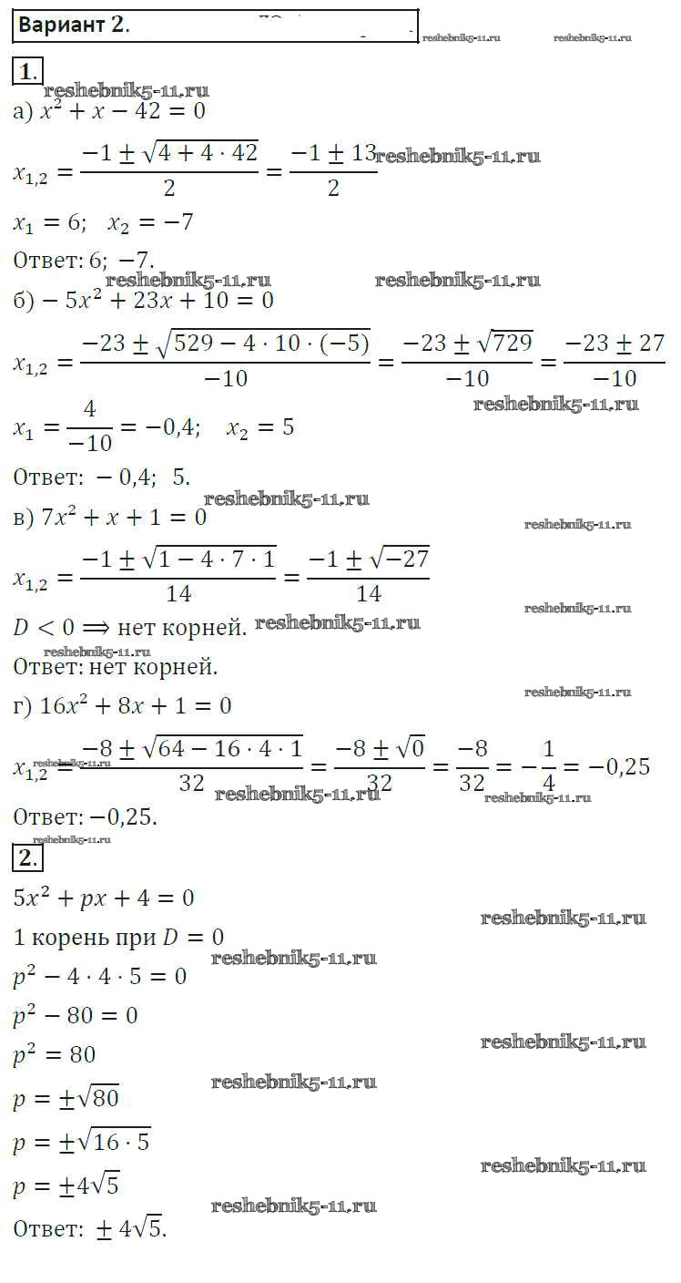 Готовая домашняя работа с ответами по Алгебре за 8 класс Александрова Самостоятельные работы Мнемозина 2016 ФГОС - СР-34. Варианты 2
