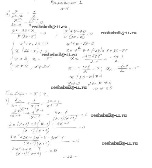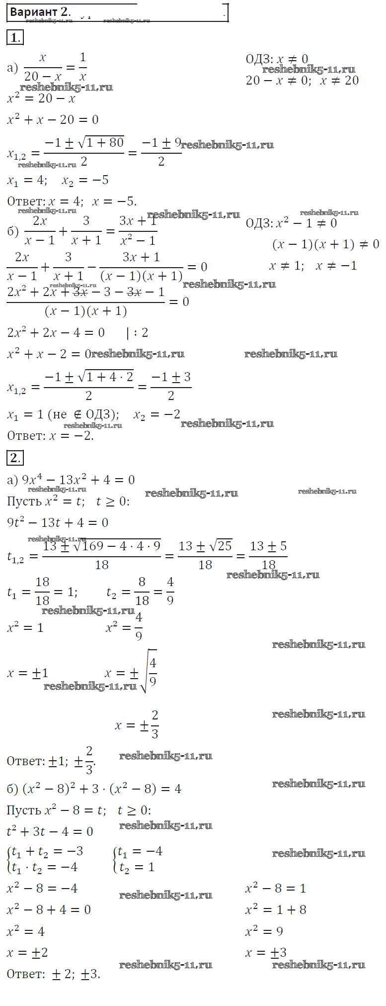 Готовая домашняя работа с ответами по Алгебре за 8 класс Александрова Самостоятельные работы Мнемозина 2016 ФГОС - СР-35. Варианты 2