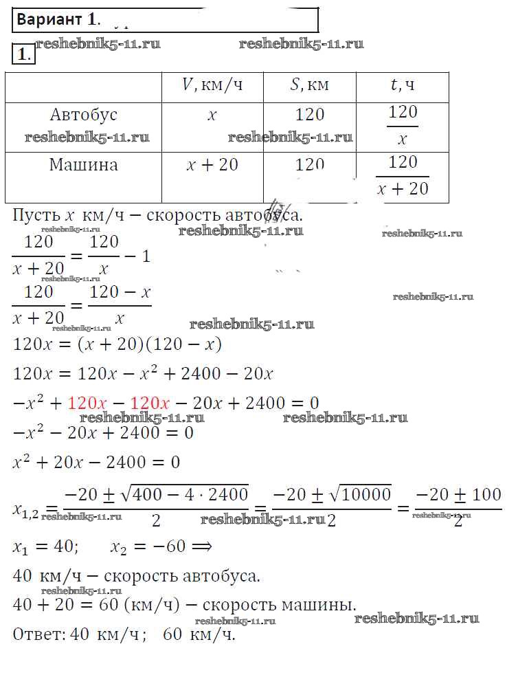 Готовая домашняя работа с ответами по Алгебре за 8 класс Александрова Самостоятельные работы Мнемозина 2016 ФГОС - СР-36. Варианты 1