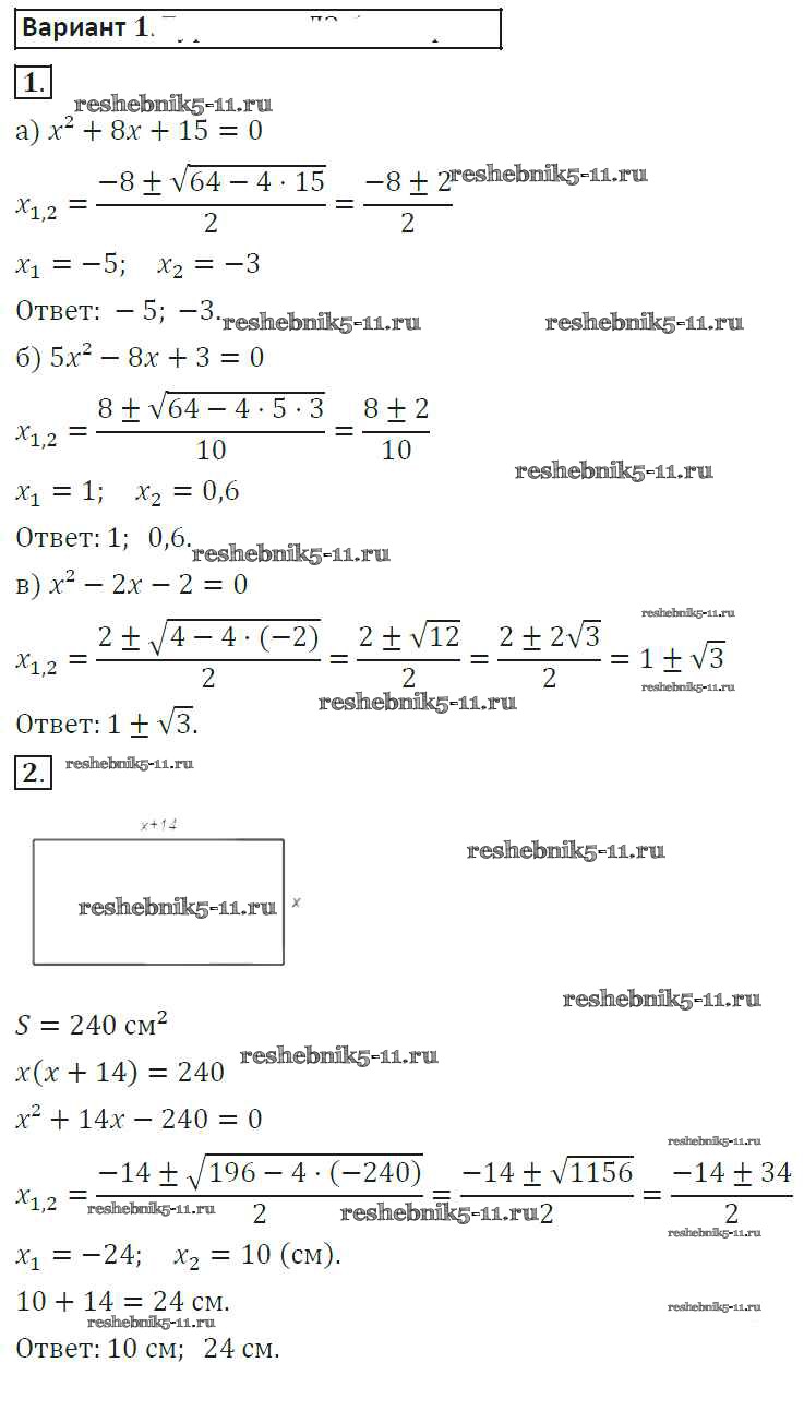 Готовая домашняя работа с ответами по Алгебре за 8 класс Александрова Самостоятельные работы Мнемозина 2016 ФГОС - СР-37. Варианты 1