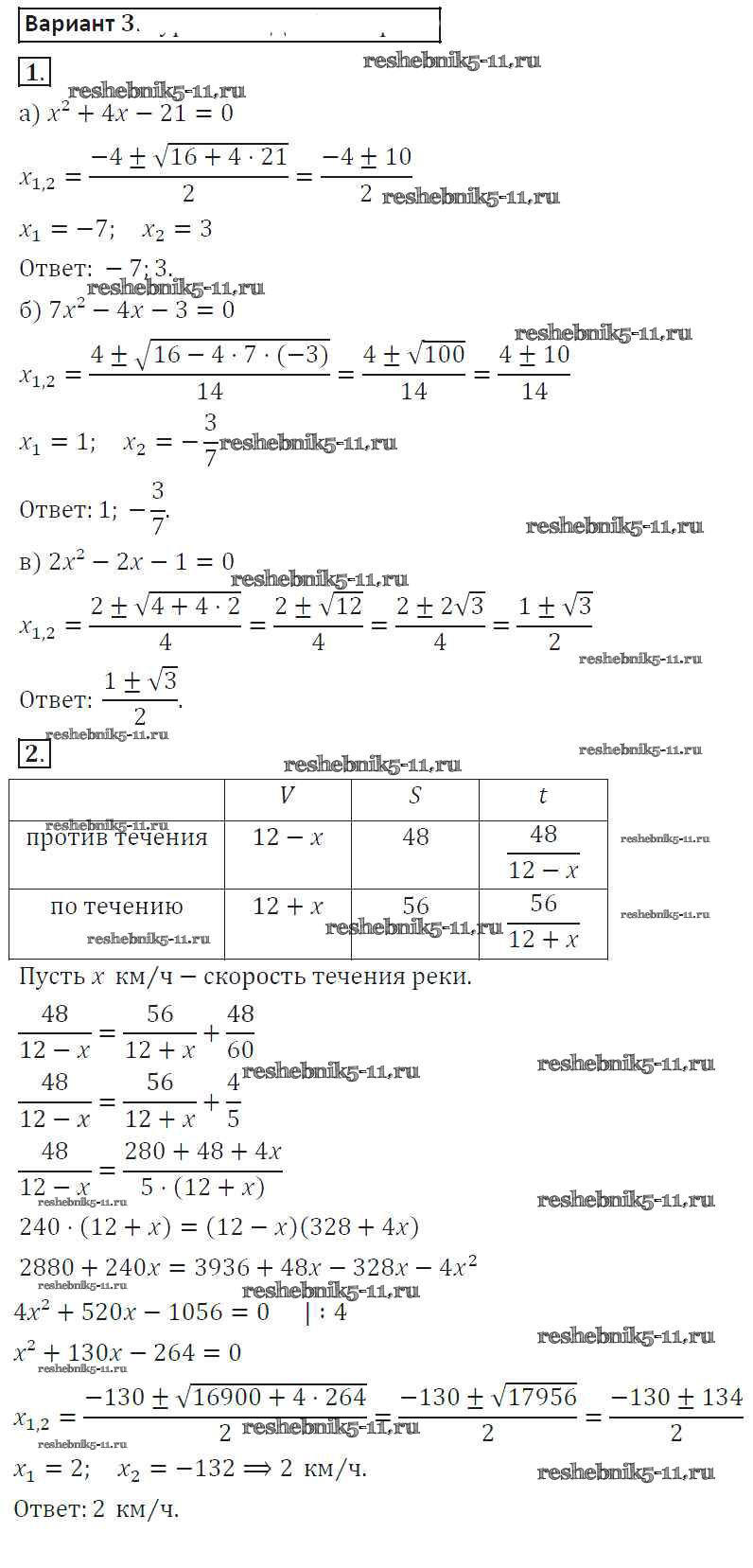 Готовая домашняя работа с ответами по Алгебре за 8 класс Александрова Самостоятельные работы Мнемозина 2016 ФГОС - СР-37. Варианты 3