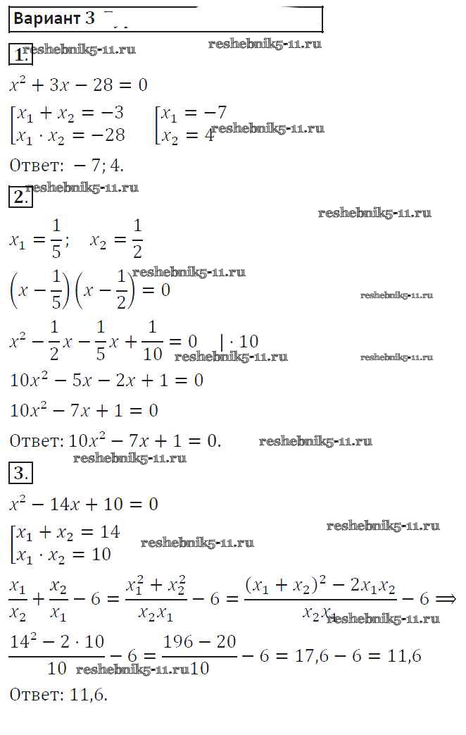 Готовая домашняя работа с ответами по Алгебре за 8 класс Александрова Самостоятельные работы Мнемозина 2016 ФГОС - СР-38. Варианты 3