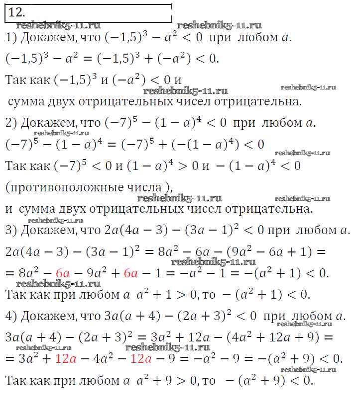 Готовая домашняя работа с ответами по Алгебре за 8 класс Колягин, Ткачева, Федорова, Шабунин Учебник УМК Просвещение 2013 ФГОС - Упражнения 12