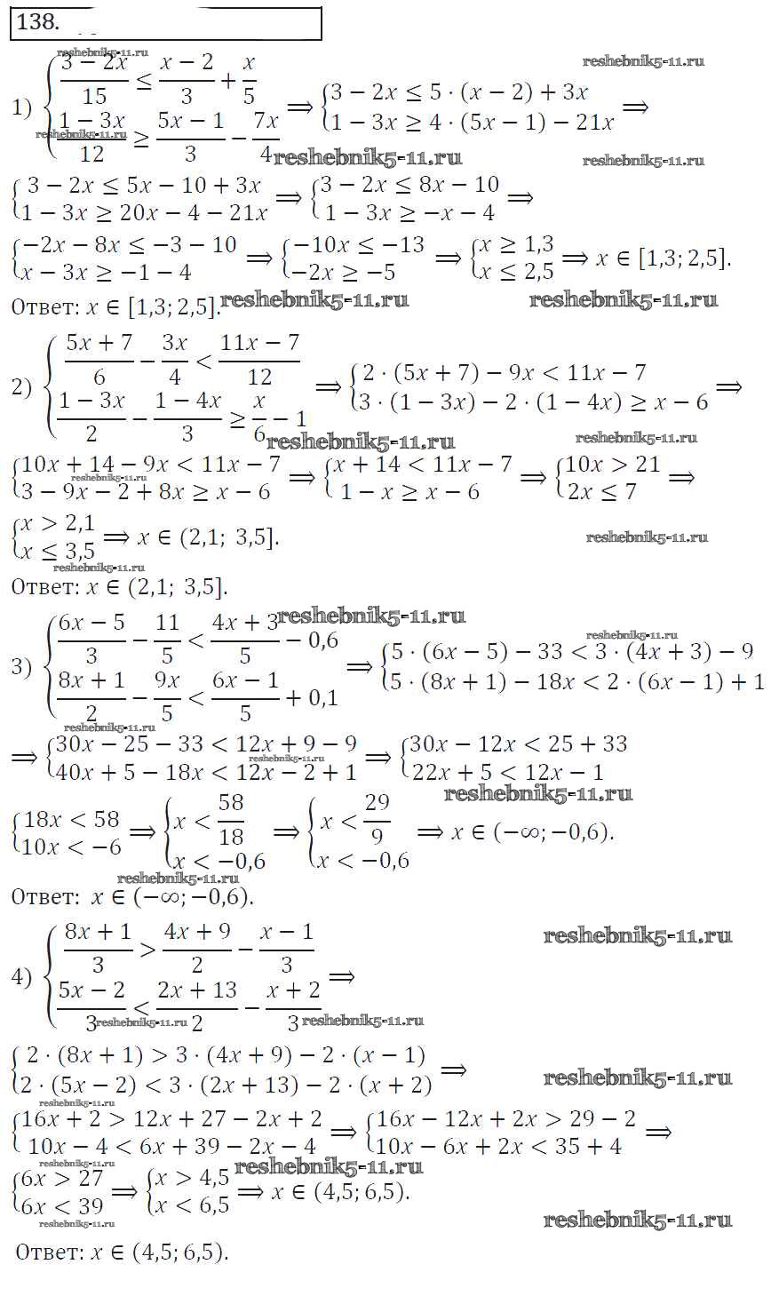 Готовая домашняя работа с ответами по Алгебре за 8 класс Колягин, Ткачева, Федорова, Шабунин Учебник УМК Просвещение 2013 ФГОС - Упражнения 138