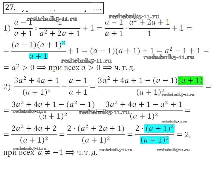 Готовая домашняя работа с ответами по Алгебре за 8 класс Колягин, Ткачева, Федорова, Шабунин Учебник УМК Просвещение 2013 ФГОС - Упражнения 27