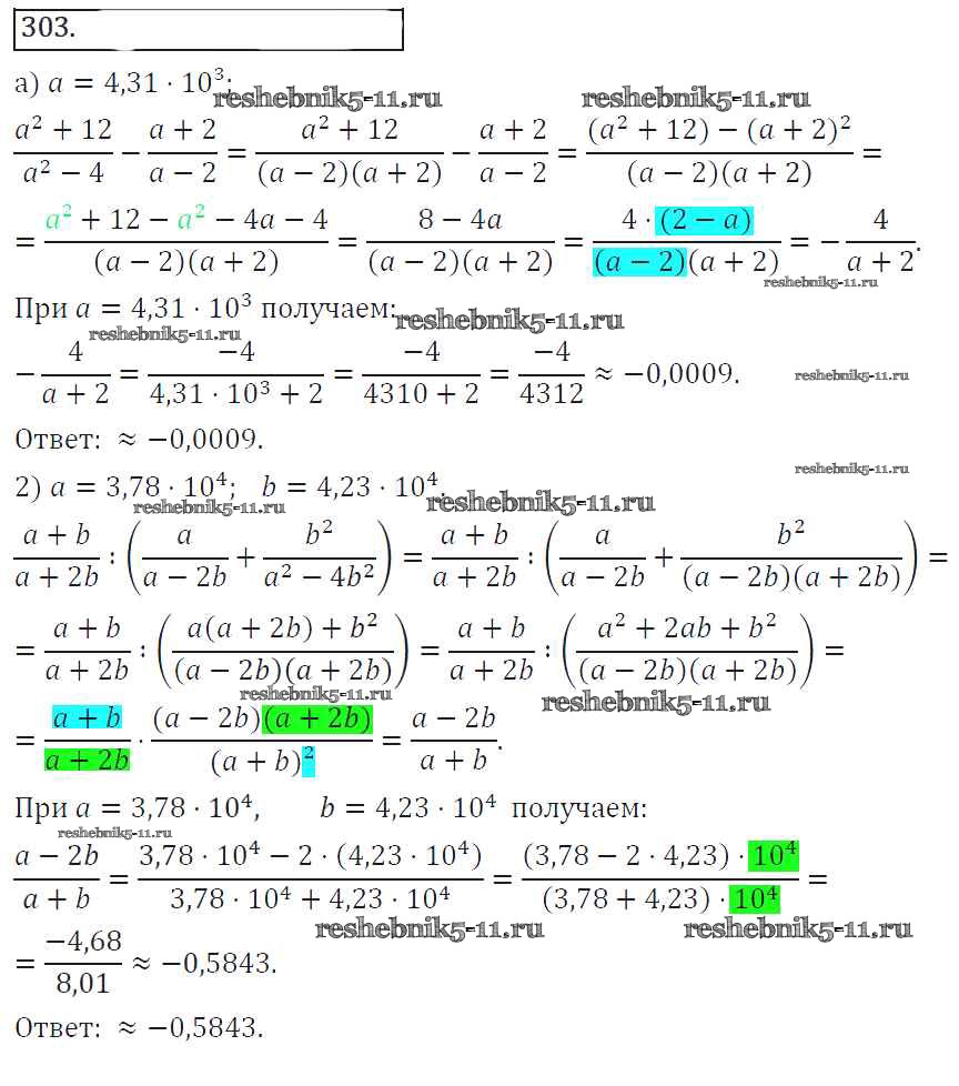 Готовая домашняя работа с ответами по Алгебре за 8 класс Колягин, Ткачева, Федорова, Шабунин Учебник УМК Просвещение 2013 ФГОС - Упражнения 303