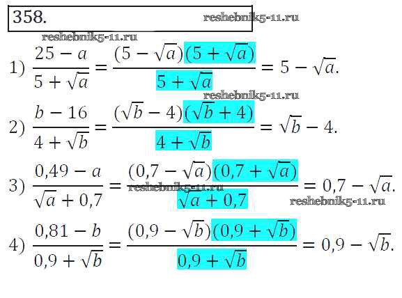 Готовая домашняя работа с ответами по Алгебре за 8 класс Колягин, Ткачева, Федорова, Шабунин Учебник УМК Просвещение 2013 ФГОС - Упражнения 358