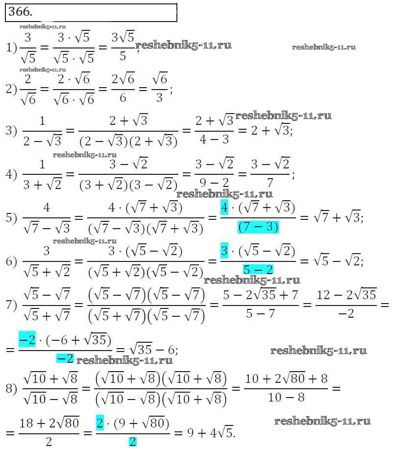 Готовая домашняя работа с ответами по Алгебре за 8 класс Колягин, Ткачева, Федорова, Шабунин Учебник УМК Просвещение 2013 ФГОС - Упражнения 366