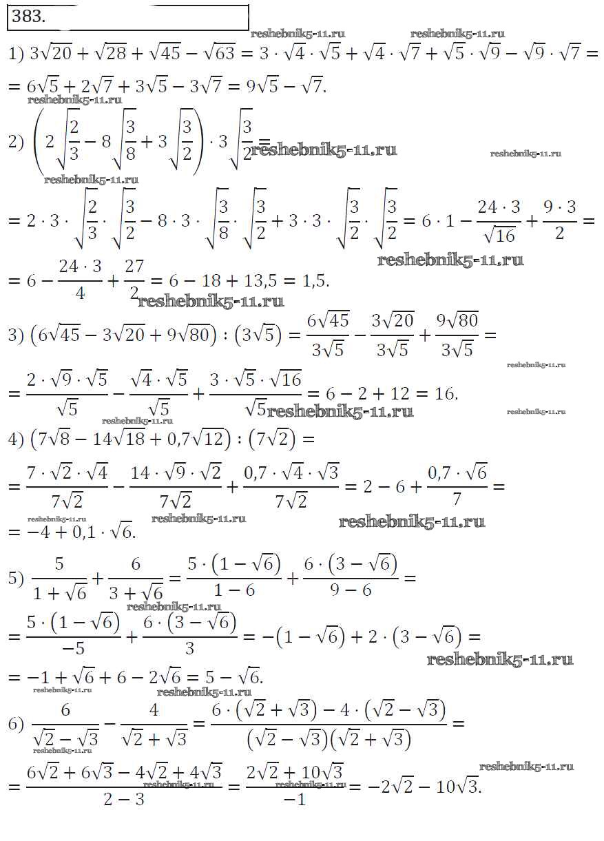 Готовая домашняя работа с ответами по Алгебре за 8 класс Колягин, Ткачева, Федорова, Шабунин Учебник УМК Просвещение 2013 ФГОС - Упражнения 383