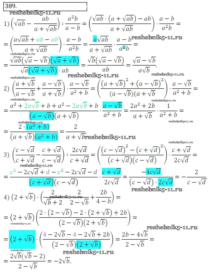 Готовая домашняя работа с ответами по Алгебре за 8 класс Колягин, Ткачева, Федорова, Шабунин Учебник УМК Просвещение 2013 ФГОС - Упражнения 389