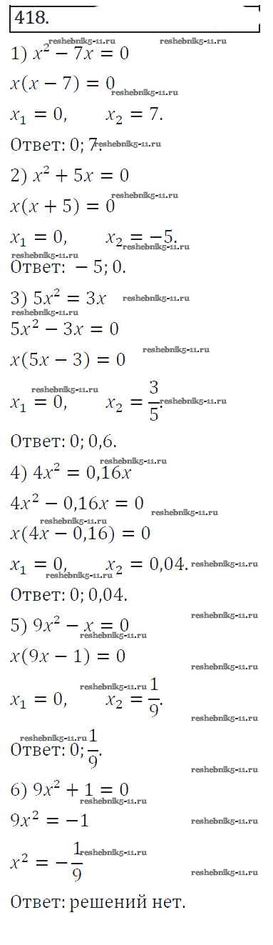 Готовая домашняя работа с ответами по Алгебре за 8 класс Колягин, Ткачева, Федорова, Шабунин Учебник УМК Просвещение 2013 ФГОС - Упражнения 418