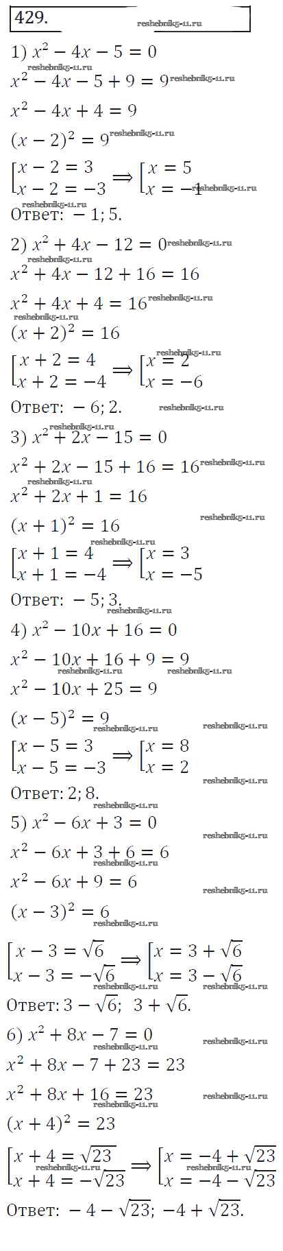 Готовая домашняя работа с ответами по Алгебре за 8 класс Колягин, Ткачева, Федорова, Шабунин Учебник УМК Просвещение 2013 ФГОС - Упражнения 429