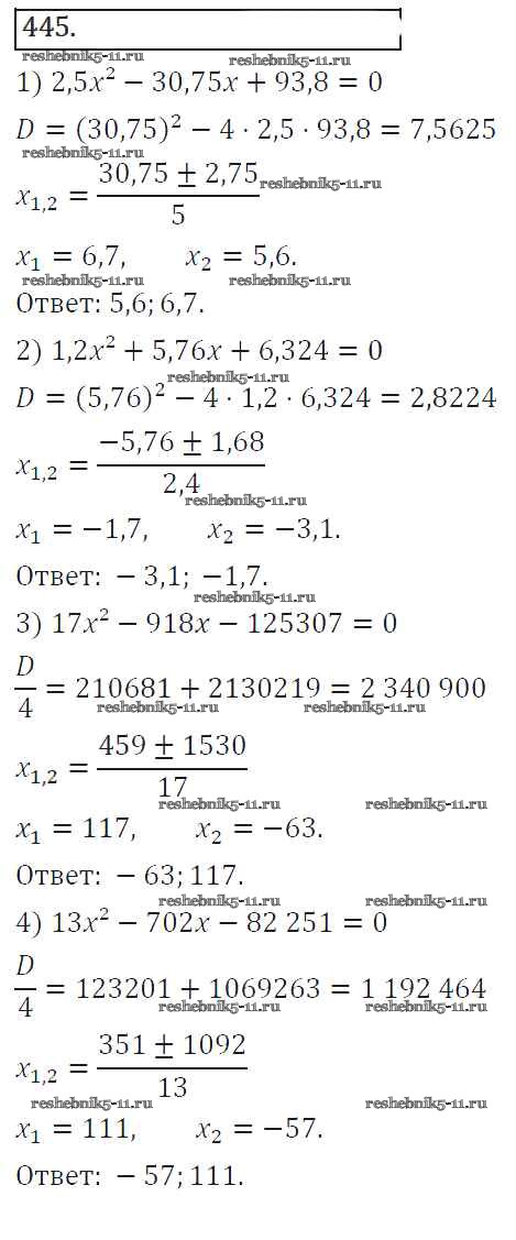 Готовая домашняя работа с ответами по Алгебре за 8 класс Колягин, Ткачева, Федорова, Шабунин Учебник УМК Просвещение 2013 ФГОС - Упражнения 445
