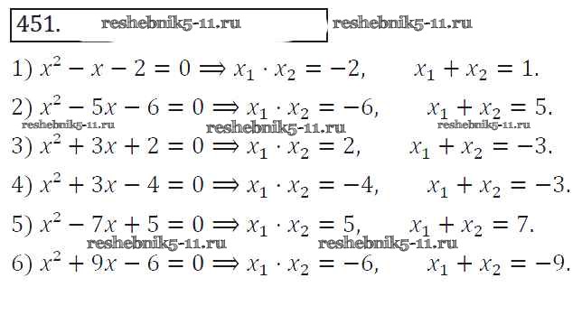 Готовая домашняя работа с ответами по Алгебре за 8 класс Колягин, Ткачева, Федорова, Шабунин Учебник УМК Просвещение 2013 ФГОС - Упражнения 451