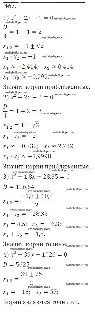 Готовая домашняя работа с ответами по Алгебре за 8 класс Колягин, Ткачева, Федорова, Шабунин Учебник УМК Просвещение 2013 ФГОС - Упражнения 467