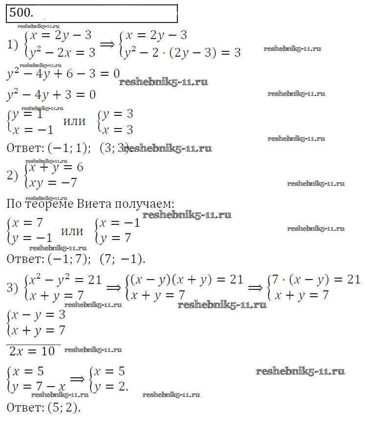 Готовая домашняя работа с ответами по Алгебре за 8 класс Колягин, Ткачева, Федорова, Шабунин Учебник УМК Просвещение 2013 ФГОС - Упражнения 500
