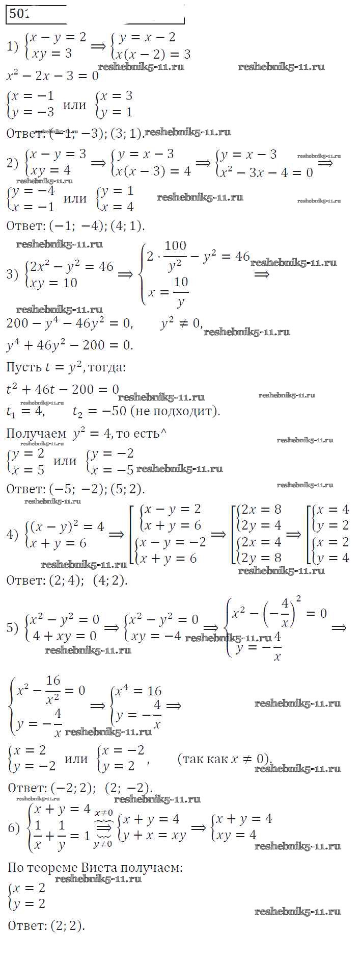 Готовая домашняя работа с ответами по Алгебре за 8 класс Колягин, Ткачева, Федорова, Шабунин Учебник УМК Просвещение 2013 ФГОС - Упражнения 501