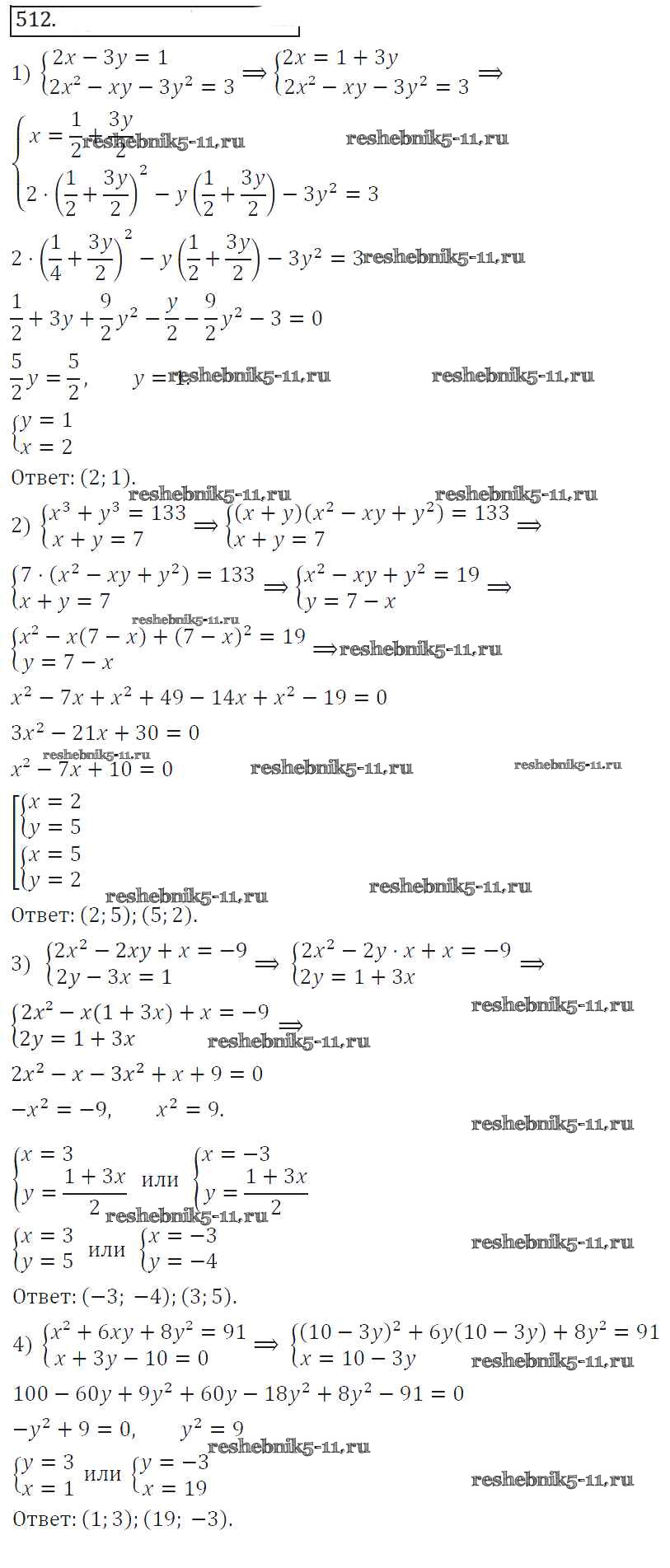 Готовая домашняя работа с ответами по Алгебре за 8 класс Колягин, Ткачева, Федорова, Шабунин Учебник УМК Просвещение 2013 ФГОС - Упражнения 512