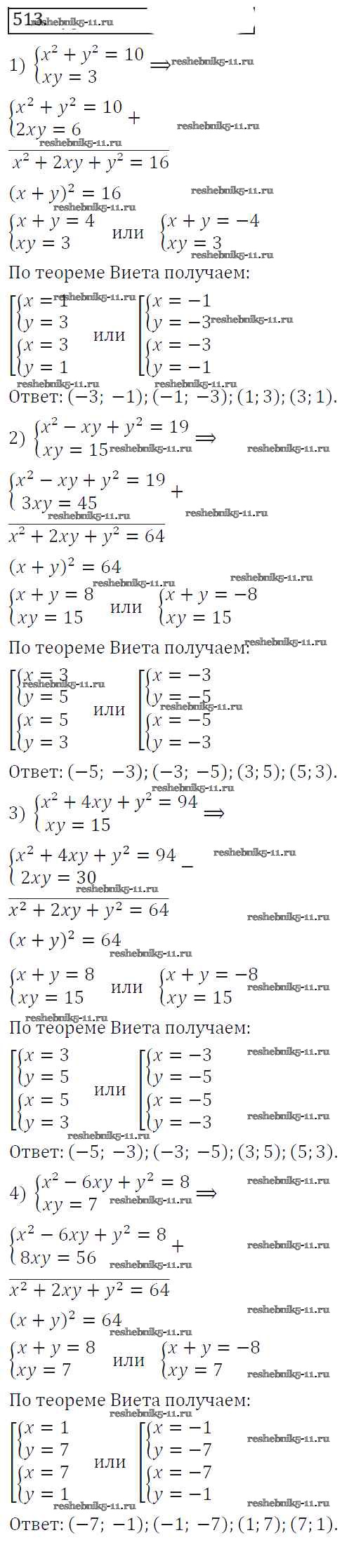 Готовая домашняя работа с ответами по Алгебре за 8 класс Колягин, Ткачева, Федорова, Шабунин Учебник УМК Просвещение 2013 ФГОС - Упражнения 513