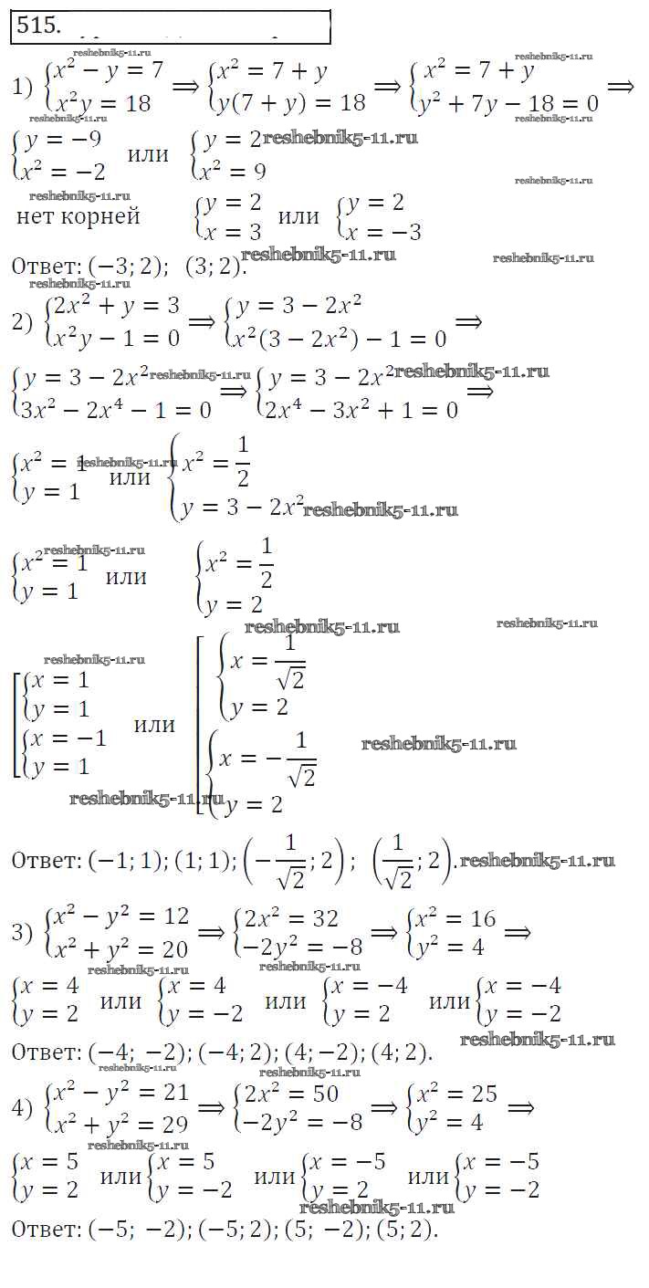 Готовая домашняя работа с ответами по Алгебре за 8 класс Колягин, Ткачева, Федорова, Шабунин Учебник УМК Просвещение 2013 ФГОС - Упражнения 515